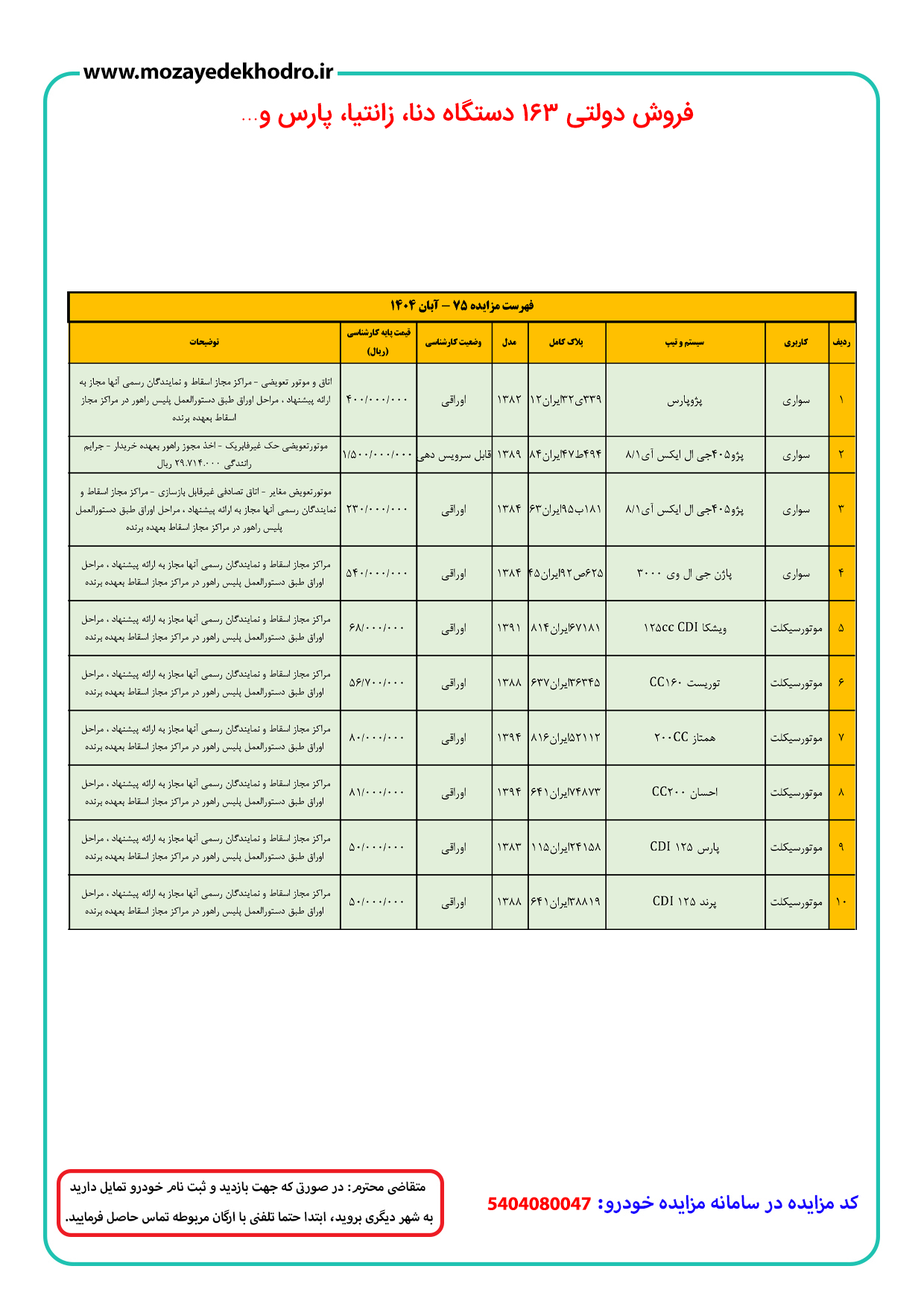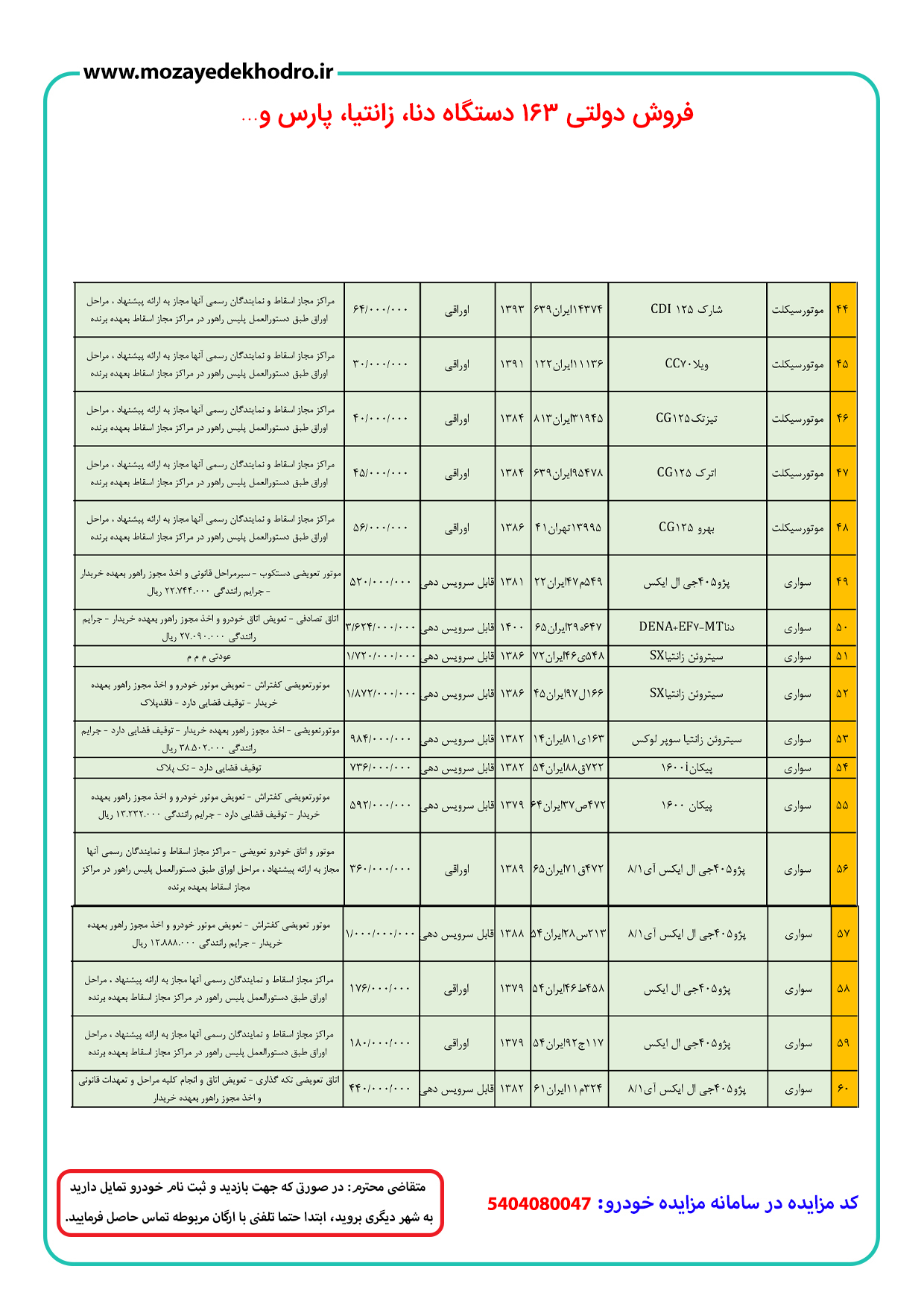 برای مشاهده لیست خودروها روی عکس روبرو کلیک کنید.